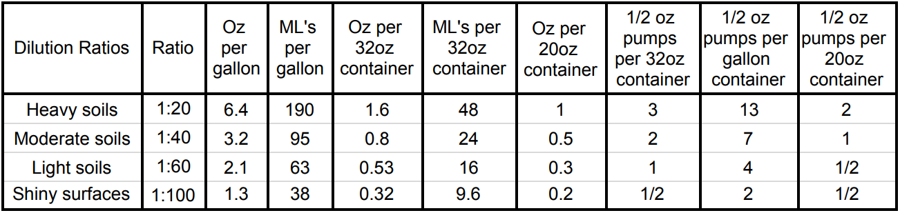 - See what dilution works best for your job at hand on our FAQ’s page.
